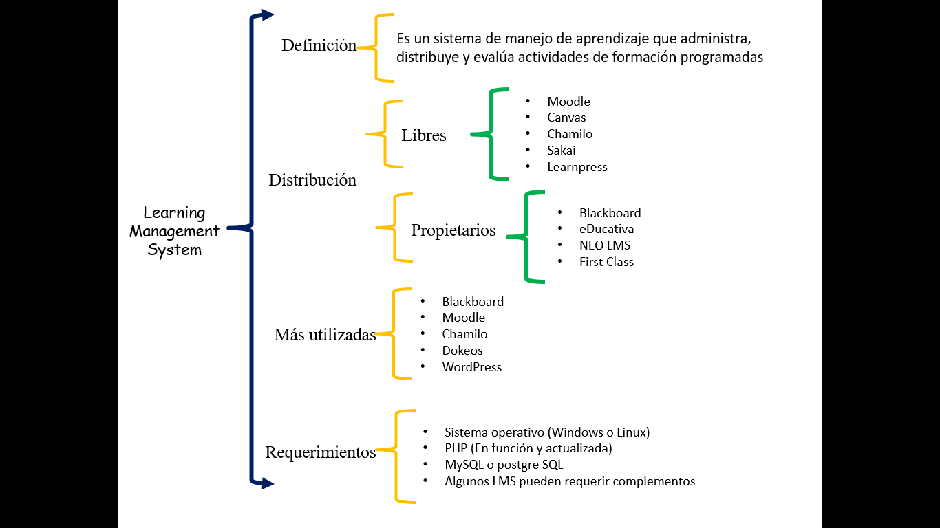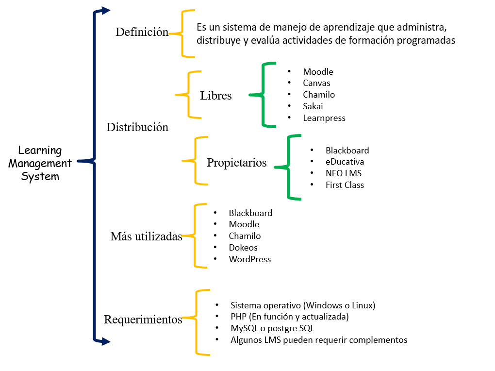 Los LMS es un software que administra y registra a todos los intérpretes que influyen o que contribuyen en el aprendizaje (alumnos, docentes, administradores o gestores, etc.). También organiza los diferentes cursos en un catálogo y almacena datos sobre los usuarios. Los LCMS serían como la mezcla de los dos programas antes mencionados y también sería como un campus virtual.