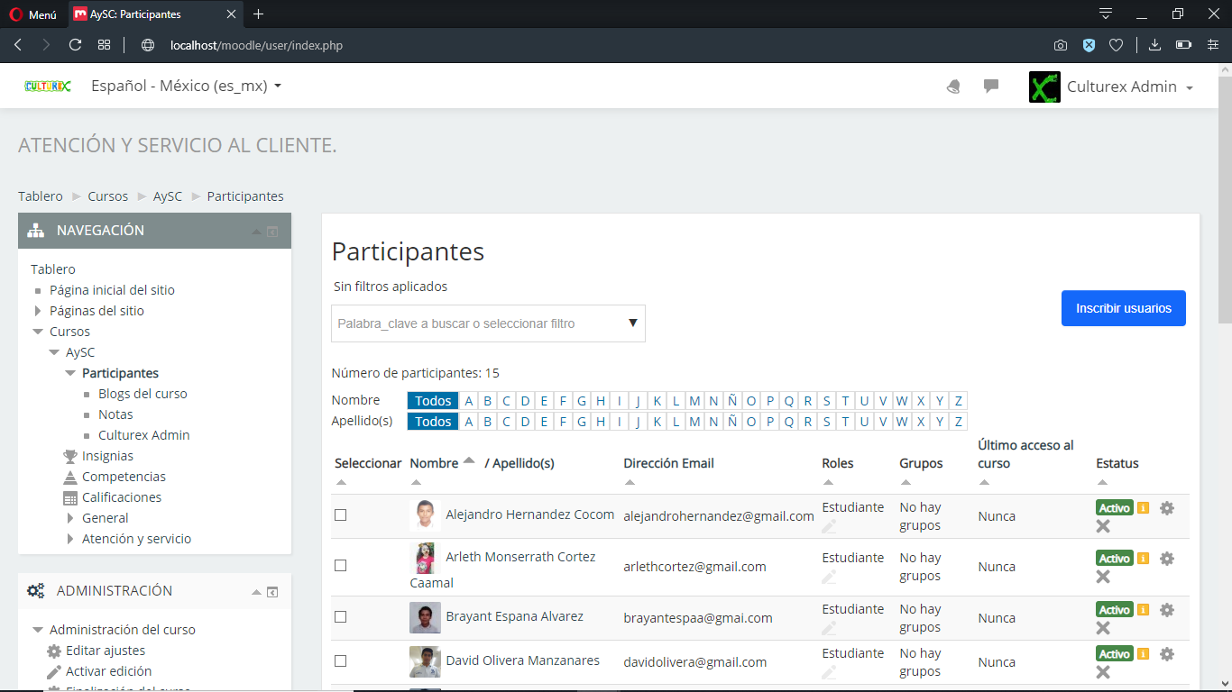 El dia de hoy se subieron 15 cuentas de los empleados más destacados en la empresa y dispuestos a realizar el curso de capacitación.